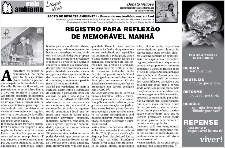 REGISTRO PARA REFLEXÃO DE MEMORÁVEL MANHÃ
